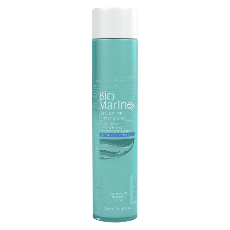 تونیک پاککننده صورت بایومارین، سازگار با انواع پوست، حاوی عصاره گریپفروت، رزماری، آرنیکا، نمک دریایی با خاصیت ضد جوش و آکنه، پاککنندگی ملایم، تنظیم چربی، ضدباکتری و مرطوبکننده، حجم 200 میلیلیتر، مدل جلبک دریایی